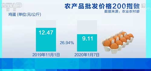 除了(le)豬肉之外(wài),雞蛋的(de)價格也(yě)是(shì)備受關注的(de)。最近(jìn)大(dà)家(jiā)都(dōu)能(néng)夠明(míng)顯感覺到(dαào)雞蛋的(de)價格是(shì)降了(le)不(bù)少(shǎo)。農(nóng)業(yè)農(nóng)村(cūn)部數(shù)據顯示,從(cóng)2 020年(nián)的(de)第一(yī)周情況來(lái)看(kàn),1月(yuè)7日(rì)全國(guó)雞蛋價格每公斤9.↓11元,比2019年(nián)第四季度最高(gāo)價下(xià)降了(le)3.36元,下(xià)降幅度達到(dào)26.94%α。
